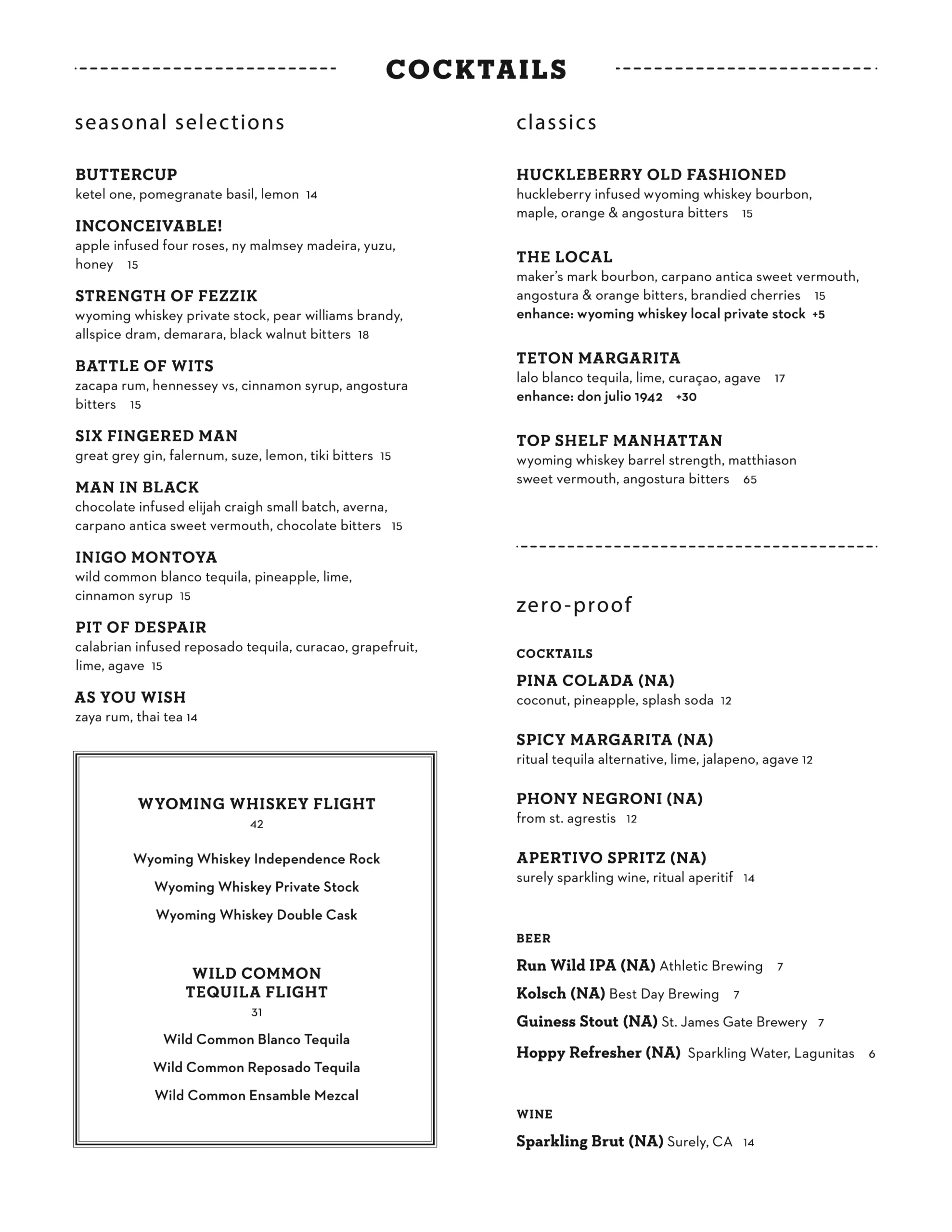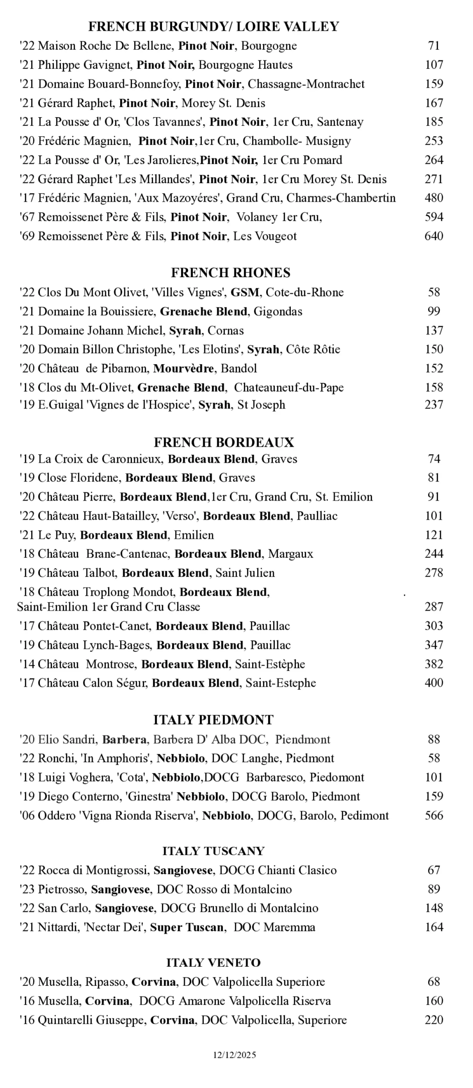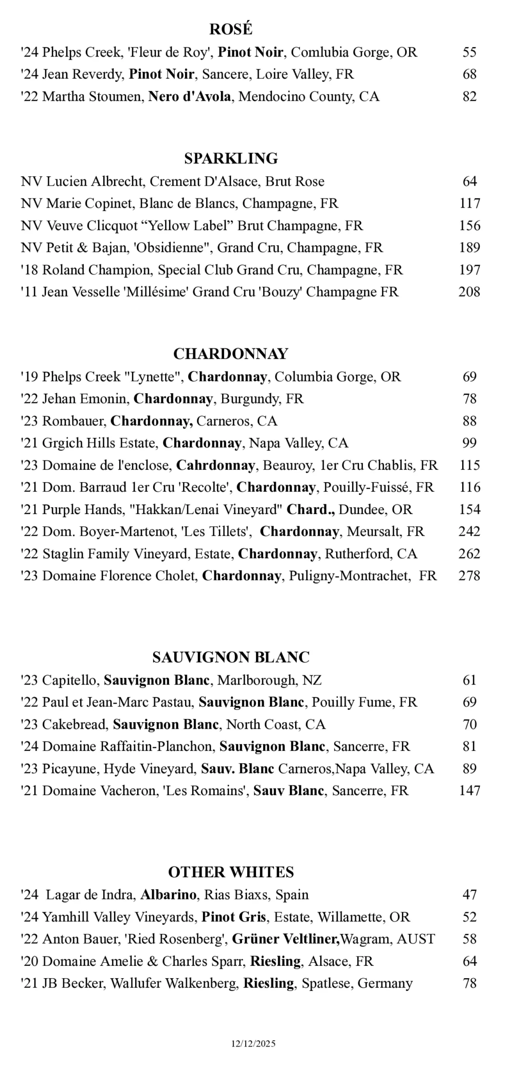 Our wine menu changes often, please view our list of the most recent offerings.