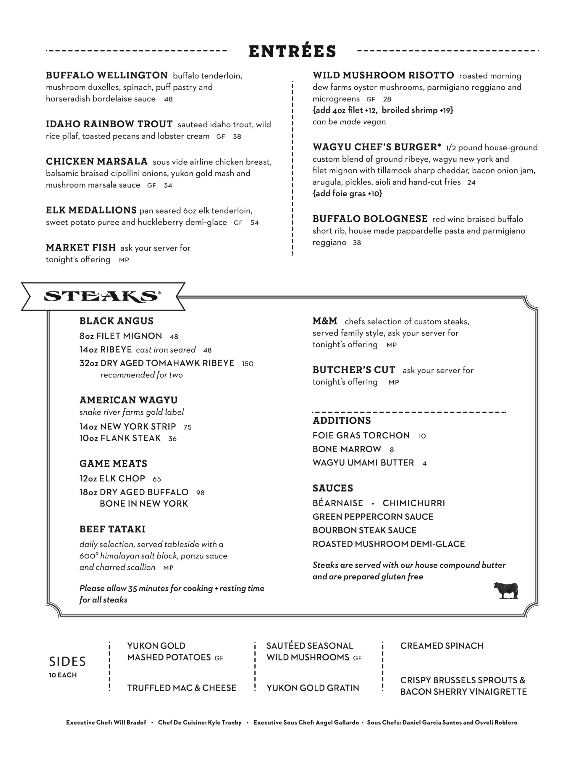 Dinner Menu – 5 to 9